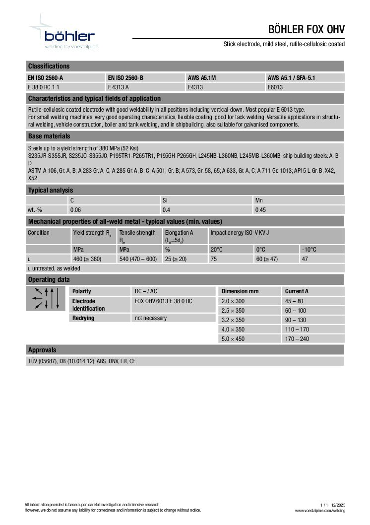 Böhler FOX S 6013 General Purpose Welding Electrodes
