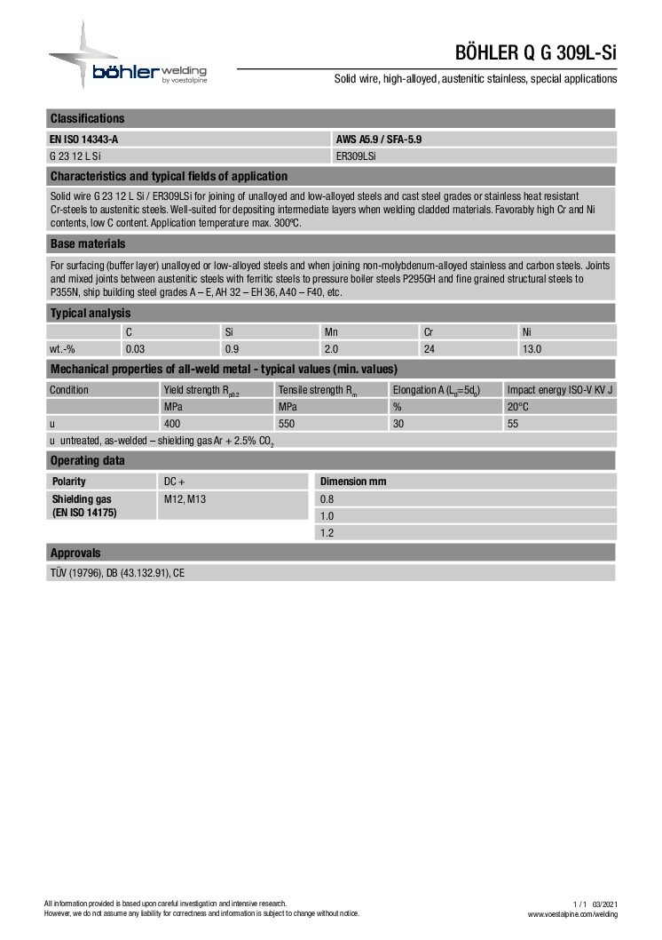 Böhler 309LSi MIG Wire