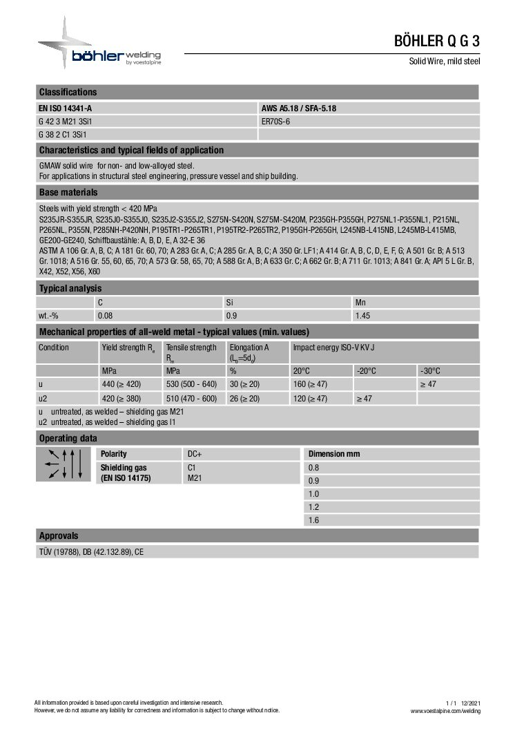 Böhler Q G3 70S-6 MIG Wire