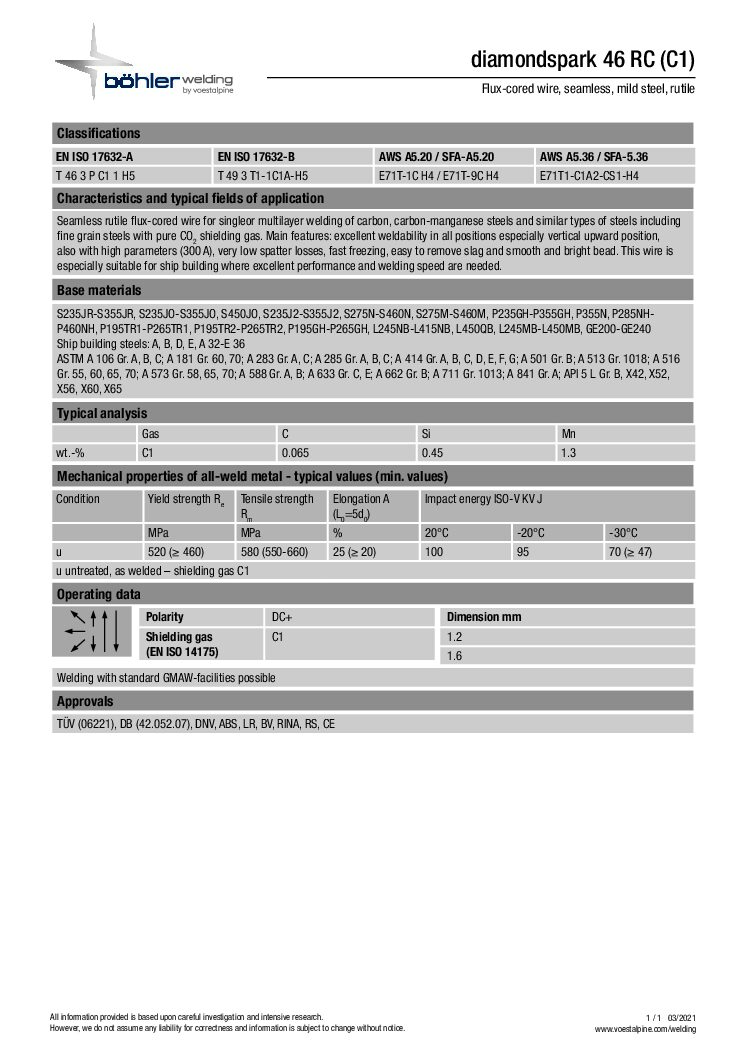 Böhler Diamondspark E71T-1C MIG Wire