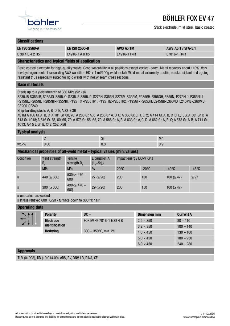 Böhler FOX EV 47 7016 Welding Electrodes